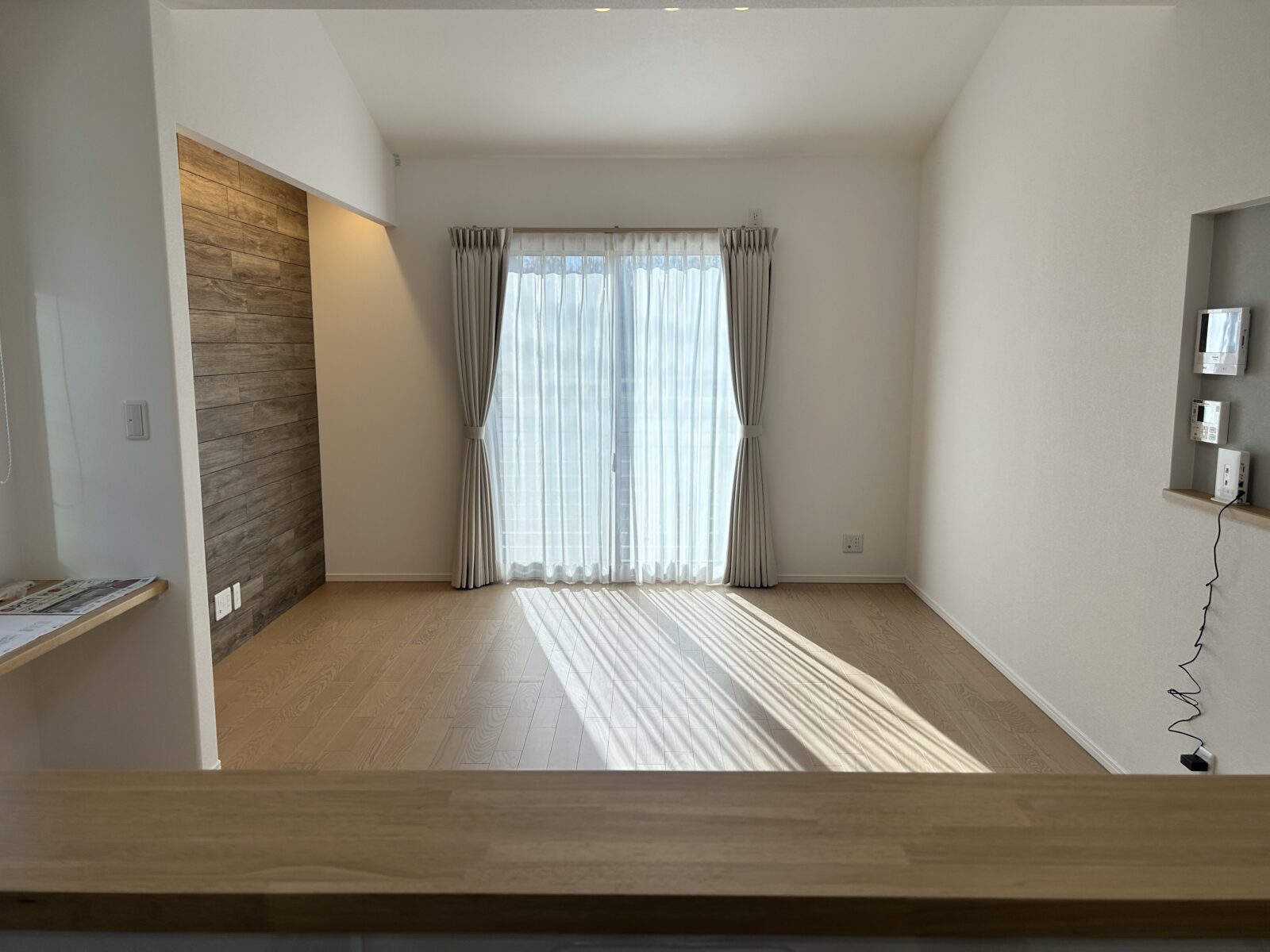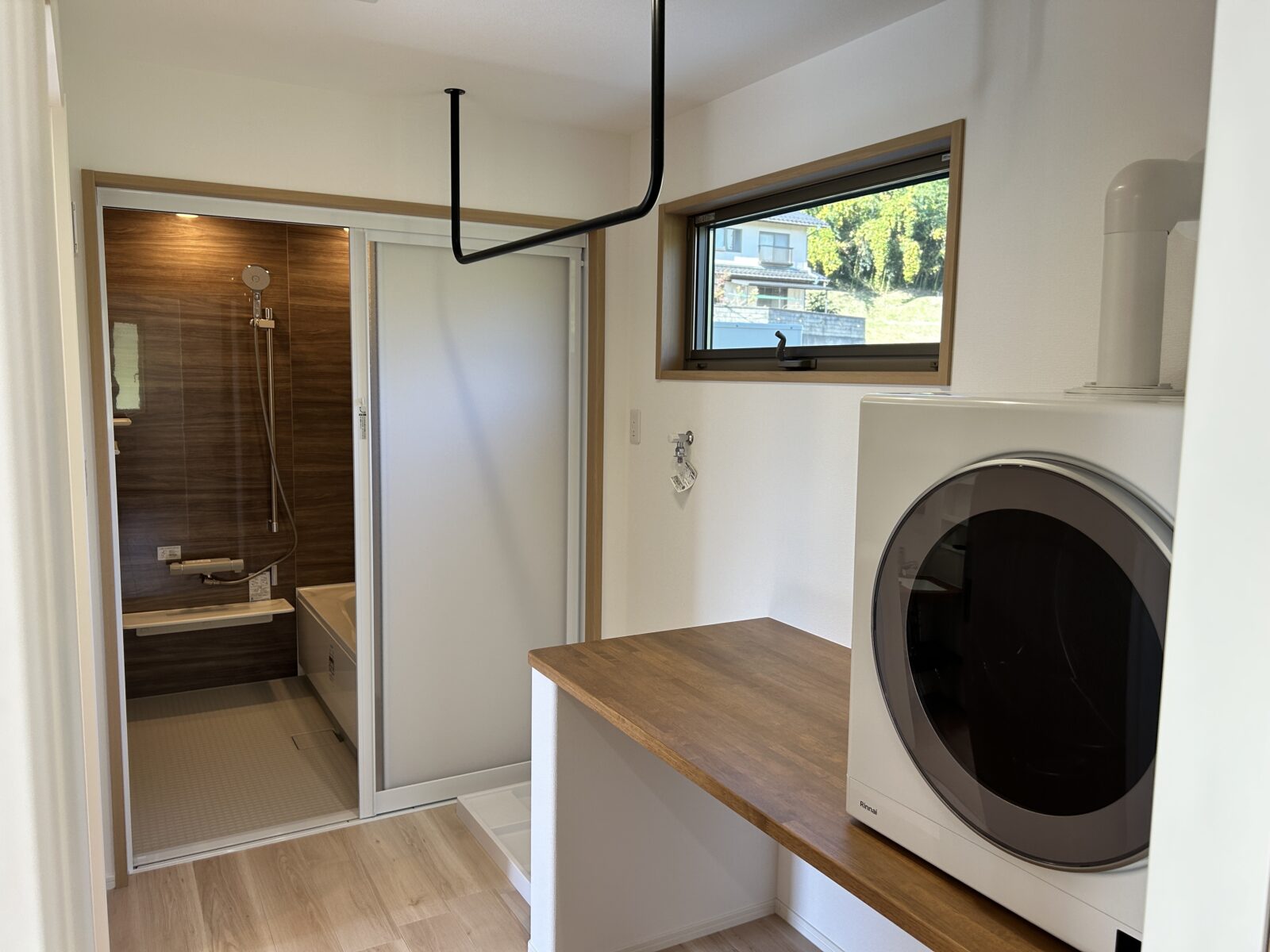 住宅街に建つ、ナチュラルな暮らし。(GX志向型住宅) GX志向型住宅に適合した住宅で、2025年度の子育てグリーン住宅支援事業のGX補助金を取得しています。 ナチュラル系が好みのご夫婦のため、木目柄の部材を多く採用しました。 キッチン 収納はもちろん、ゴミ置きスペースにも配慮したパントリーファニチャーを設置しています。 ランドリールーム 洗濯物が全て室内で完結できるよう乾太くんを採用しました。 ハンガーパイプとカウンターを設け、洗濯物の取り込み時も楽に。